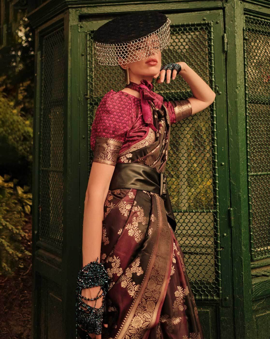 • The last image gives a detailed look of the blouse piece that comes with this saree (The blouse in the images is only for styling purpose)